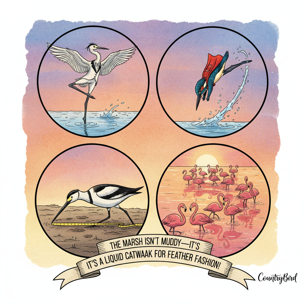 Every day is a wet-and-wild party in these marshlands! Grey herons practice one-legged meditation, kingfishers dive like blue lightning, and elegant avocets stroll around on stilt-like legs. The true divas? Flamingos—those pink aristocrats who perform synchronized sunset yoga, turning the water into a moving cocktail glass.