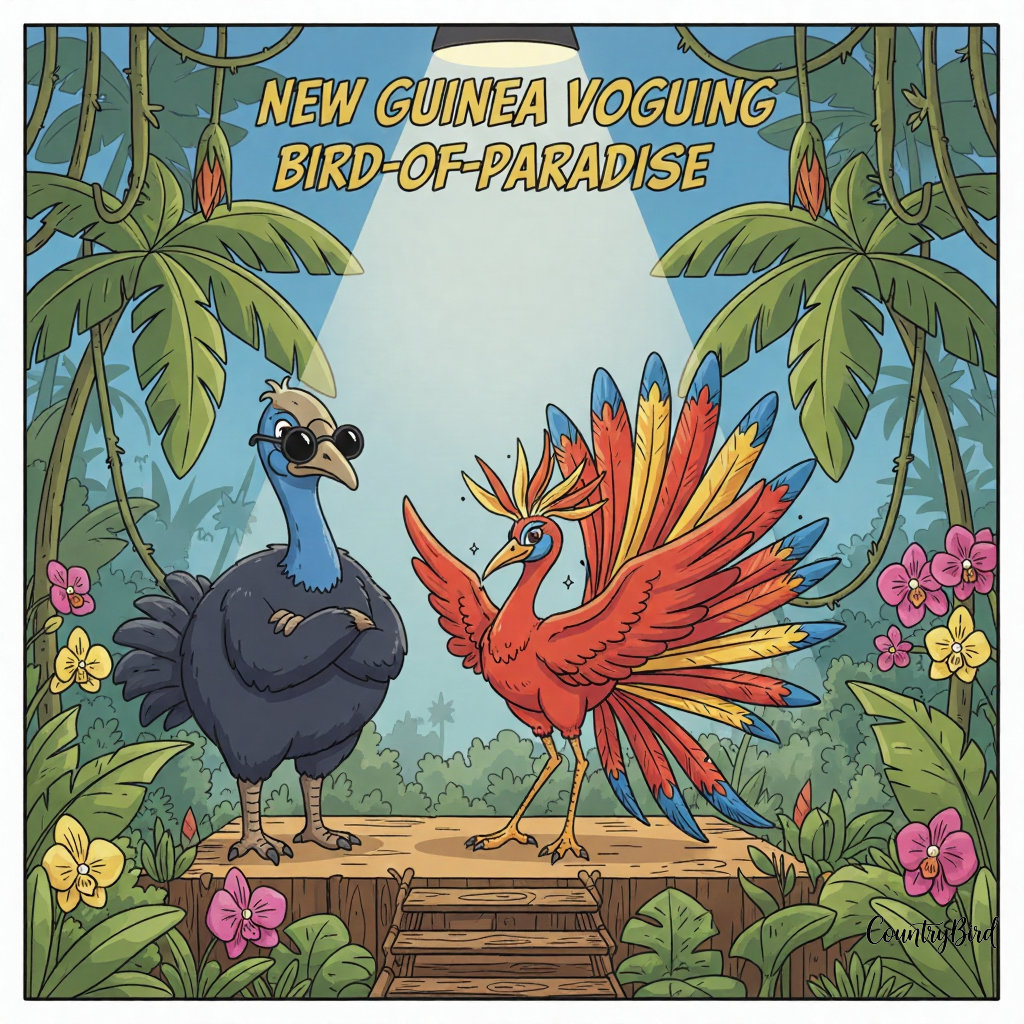 Birds-of-Paradise voguing like it's Fashion Week in the high-altitude canopy.